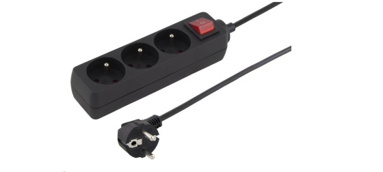 PremiumCord Prodlužovací přívod 230V 2m 3 zásuvky + vypínač, černý