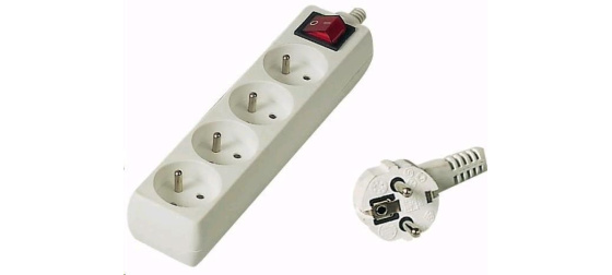 PREMIUMCORD Prodlužovací přívod 230V 2m, 4 zásuvky + vypínač, bílá