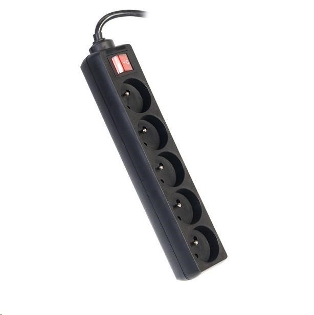PremiumCord Prodlužovací přívod 230V 3m 5 zásuvek + vypínač, černý