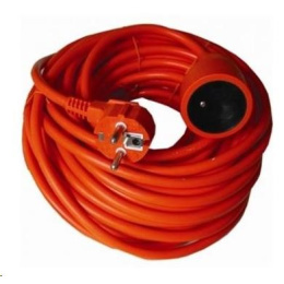 Prodlužovací přívod 230V - jednozásuvka. - barva: oranžová - 250V, 16A - 1x zásuvka / zástrčka - délka 40m - průřez vodiče 3x1,5mm2 - vodič (PVC) H05VV-F3G - barva vodiče: oranžová - baleno po 1ks - sáček s EAN kodem.
