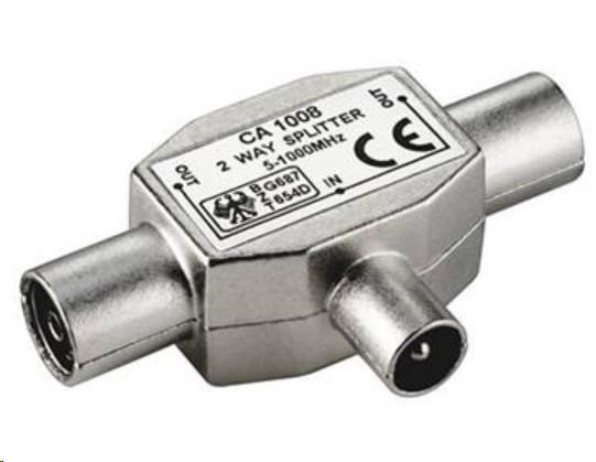 1× PremiumCord TV anténní slučovač/rozbočovač (1× samec → 2× samice)