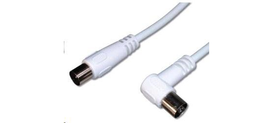 TV propojovací kabel M/F 75 Ohm, zahnutý konektor - IEC konektory samec-samice - kvalitní stínění - zahnutý konektor 90 stupňů - délka 3m.