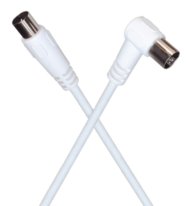 3C2V- účastnická šňůra pro připojení TV do antenní zásuvky- IEC konektory samec-samice- kvalitní stínění- zahnutý konektor 90 stupňů- délka 20m