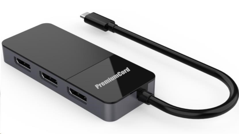PremiumCord USB-C (DP1.4) na 3x DP1.4 MST 8K Adapter extended, mirror, duplicate režimy zobrazení na třech monitorech