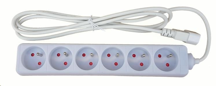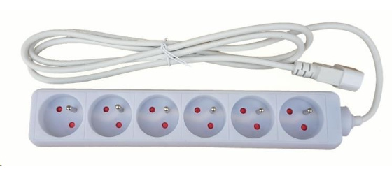 Prodlužovací přívod 6x230V CEE7/5 pro připojení do UPS s konektory IEC 320-C14. Počet výstupních zásuvek: 6 Délka kabelu: 2m, 3x0,75mm2 Maximální napětí: 230V Maximální proud: 10A Baleno v PE sáčku. OEM - Dodavatel: eD system a.s., Novoveská 1262/95, 709 00 Ostrava - Mariánské Hory, Česká republika, ,