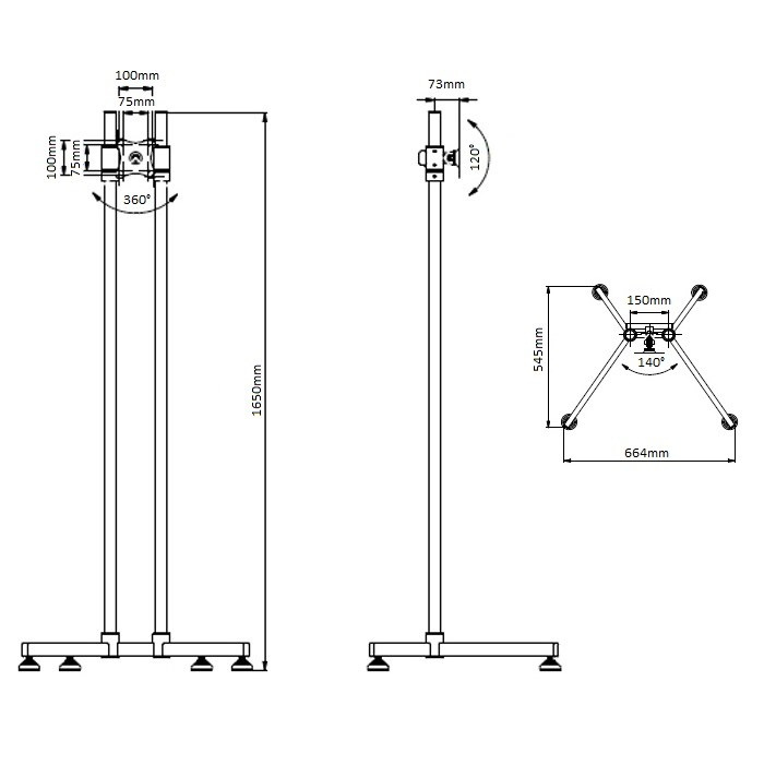 Statický stojan na Tv nebo monitor 17-43", výškové polohování 300-1650mm, otáčení +/-60°, náklon +/-60°, pivot +/-360°, VESA 75x75 a 100x100, nosnost 25kg.Více