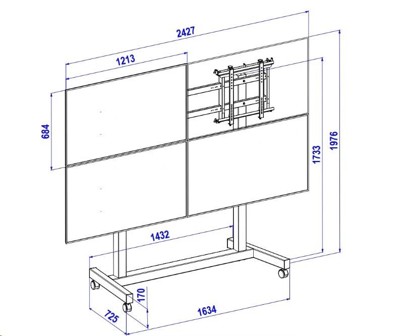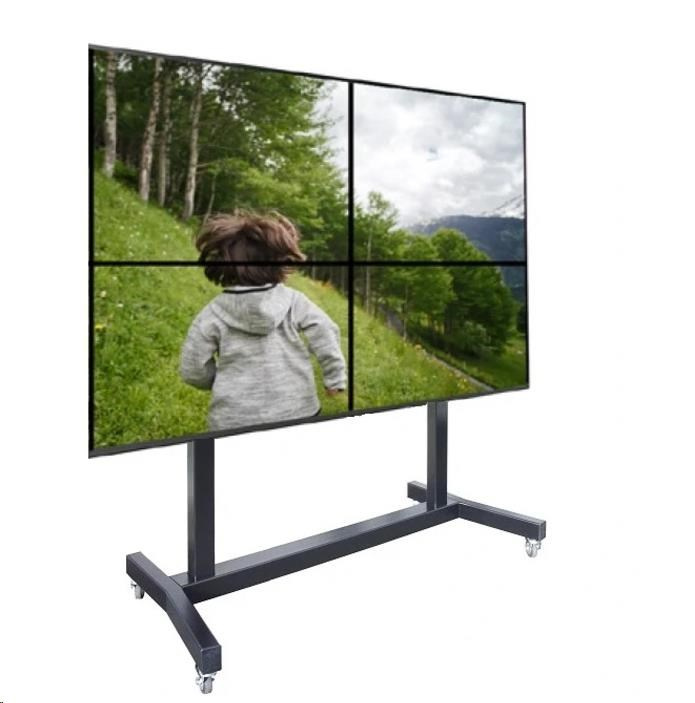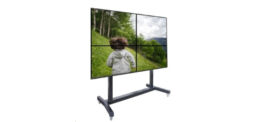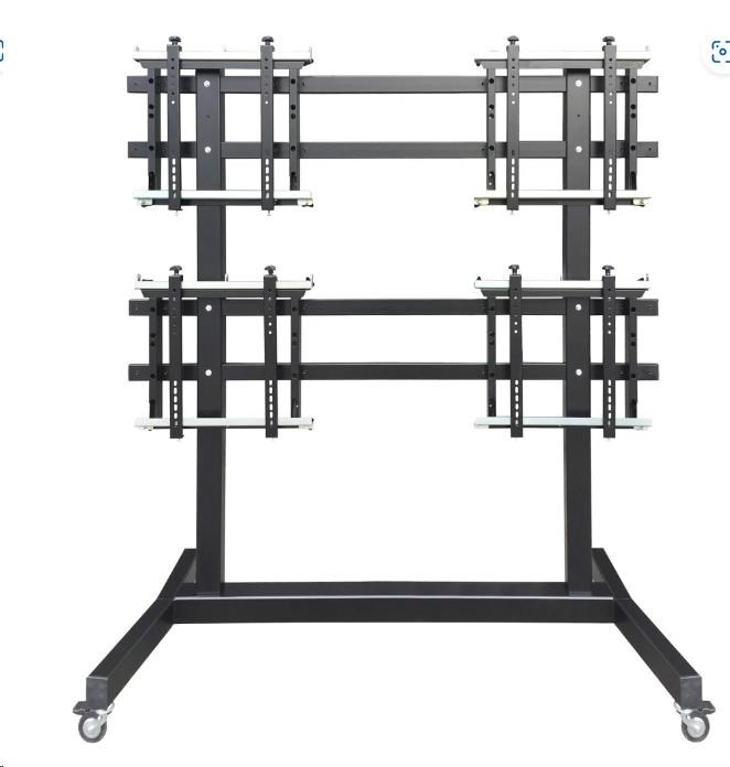 Podlahový pojízdný televizní stojan na 4 obrazovky 43" - 55", podstava 1634x725 mm, výška 1903 mm, VESA 150x150 až 400x400, nosnost 160 kg. Fiber Mounts s.r.o., Nádražní 1296/4 69601 Rohatec Česká republika, mailto: info@drzakyastolky.cz