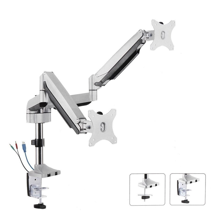 Profesionální stolní držák 2 monitorů Fiber Mounts M7C66 Velmi kvalitní, spolehlivý designový stolní držák na 2 monitory 13-32", nezávislé nastavení výšky, náklonu, otáčení, vzdálenosti i výšky monitoru Stolní kancelářský pracovní držák pro nezávislé zavěšení 2 obrazovek (monitorů, menších televizorů). Držák je plně polohovatelný a umožňuje nastavení pozice jednotlivých monitorů - vzdálenost od nosníku, výška, otočení do strany, náklon, funkci PIVOT pro možnost otočení obrazovky do horizontální nebo vertikální polohy. Uchycení na stolovou desku (případně jakoukoliv jinou pracovní plochu) je možné dvěma způsoby - na okraj (svěrák) nebo do prostoru (nutné vyvrtání 1 otvoru do desky) - obě varianty uchycení jsou součástí balení. Držák má systém pro vedení kabeláže. Barevné provedení stříbrné. Záruka 3 roky. Profesionální stolní kancelářský pracovní držák na 2 monitory, který je plně polohovatelný. Nastavení monitorů 13-32 palců je nezávislé, otáčení, sklon, vzdálenost, natočení - Fiber Mounts M7C66 Technické údaje: nosnost 18kg (2x9kg) držáky podporují VESA standardy 75x75 a 100x100 ideální na monitory a televizory s úhlopříčkou 13-32" nastavení vzdálenosti od nosníku 0-530mm nastavení výšky monitoru 0-600mm (střed obrzovky) nastavení sklonu +/- 90° otočný do stran +/- 180° 2 typy uchycení na stolovou desku síla stolové desky 10-85mm vedení kabeláže korekce roviny obrazovek materiál hliník + ocel vynikající kvalita barva stříbrná záruka 3 roky Velmi kvalitní držák na 2 monitory, který díky svému designu a snadnému polohování najde své využití především v kacelářích, ale i domácnostech. Polohu každého monitoru snadno nastavíte přesně dle svých požadavků. Monitory mohou být umístěny vedle sebe ale i zády k sobě. Každý monitor můžete výškově nastavit, otáčet, měnit vzdálenost od nosníku, přetáčet na šířku nebo na výšku... Držák má univerzální uchycení a je vhodný na všechny typy a značky monitorů, ale i All in One PC s úhlopříčkou 13-32". Kancelářský polohovatelný držák na 2 monitory Fiber Mounts M7C66 Držák na 2 monitory M7C66 podporuje VESA standardy: VESA 75x75 VESA 100x100.
