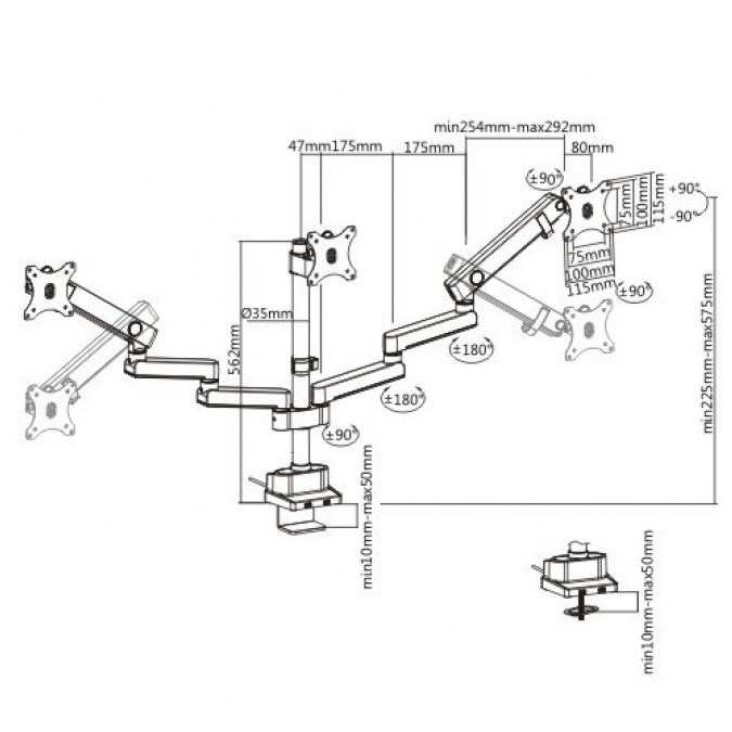 Profesionální stolní držák na 3 monitory Fiber Mounts M8C11 Plně nastavitelný kancelářský držák pro zavěšení tří monitorů 15-29", profesionální provedení, VESA 75x75 a 100x100, nosnost 21kg Profesionální systém pro uchycení a plnohodnotné polohování tří monitorů - otáčení do stran, náklon, délkové nastavení, rotace obrazovek. Držák podporuje VESA standardy 75x75 a 100x100. Maximální hmotnost monitoru 7kg (celková 21kg). Držák splní nároky každého uživatele. Profesionální stolní držák do kanceláře na 3 monitory Fiber Mounts M8C11 Technické údaje: celková nosnost 21kg (3 x 7kg) podpora VESA standardu 75x75 a 100x100 doporučená úhlopříčka monitorů 15" až 29" výškové polohování každého ramene 225mm až 575mm rotace obrazovek - možnost nezávislého otočení každého monitoru na šířku nebo na výšku nastavení vzdálenosti krajních monitorů možnost nastavení monitorů do příčky nebo do paraboly uchycení na stolové desky o průměru 10mm až 50mm stolový úchyt má integrované přípojky USB 3.0 systém vedení kabeláže materiál hliník a ocel barevné provedení černé záruka 5 let Stolní držák na 3 monitory Fiber Mounts M8C11 Držák na 3 monitory M8C11 podporuje VESA standardy: VESA 75x75 VESA 100x100 Profesionální držák na tři monitory s plnohodnotným polohováním. Držák je vhodný do kanceláří, pracoven, firem ale i domácnosti.. Fiber Mounts s.r.o., Nádražní 1296/4 69601 Rohatec Česká republika, mailto: info@drzakyastolky.cz