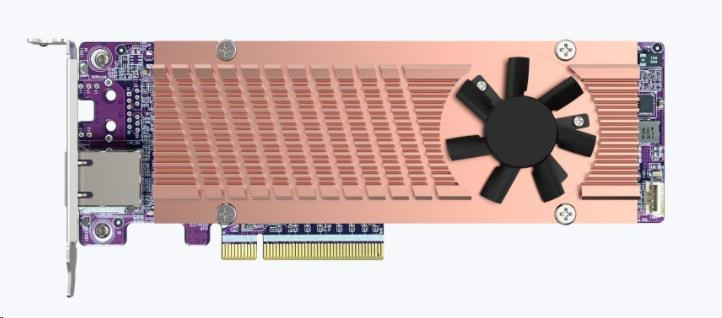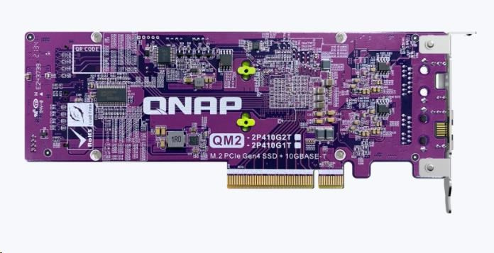 Zařízení QM2-2P410G1T umožňuje snadno přidat k vašemu QNAP NAS disky M.2 NVMe SSD a připojení 10GbE RJ45, bez nutnosti instalace ovladače. Zařízení QM2-2P410G1T je vybaveno řadičem Broadcom® a rozhraním PCIe 4.0, takže poskytuje větší šířku pásma pro vyšší výpočetní rychlost a přístup k datům. Zařízení QM2-2P410G1T zvyšuje výkon přidáním M.2 PCIe Gen4 NVMe SSD. Nezabírá 3,5" pozice pro disky, což umožňuje maximalizovat úložnou kapacitu i výkon. Zařízení QM2-2P410G1T disponuje síťovým portem 10GBASE-T Multi-Gigabit (10G / 5G / 2,5G / 1G / 100M), díky němuž vaše zařízení QNAP NAS může získat vysokorychlostní konektivitu 10GbE pro úkoly náročné z hlediska přenosové šířky. S různými switchi QNAP 10GbE můžete snadno provést upgrade na vysokorychlostní síťové prostředí.