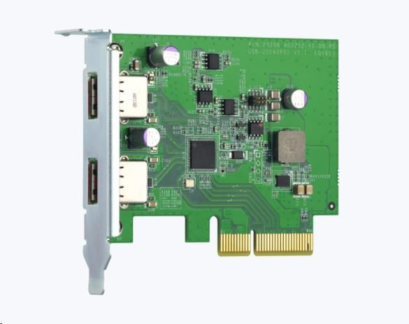 Rozšiřující karta QNAP USB 3.2 Gen 2 poskytuje rychlosti až 10 Gb/s – dvojnásobek rychlosti rozhraní USB 3.2 Gen 1 – a tím značně zvyšuje rychlost přenosu dat. Díky dvěma portům rozšiřující karta QNAP USB 3.2 Gen 2 poskytuje kompatibilitu s novějšími a rychlejšími zařízeními USB 3.2 Gen 2 pro urychlení přenosu souborů a zálohování. Rozšiřující kartu QNAP USB 3.2 Gen 2 lze nainstalovat do QNAP NAS nebo počítače s Windows®/Ubuntu®. Rozšiřující karta QNAP USB 3.2 Gen 2 poskytuje rychlosti až 10 Gb/s – dvojnásobek rychlosti rozhraní USB 3.2 Gen 1 a 20krát vyšší než u USB 2.0. Pomocí rozšiřující karty QNAP USB 3.2 Gen 2 v zařízení QNAP NAS nebo počítači můžete připojit QNAP USB JBOD pro zálohování a rozšíření úložiště. Rozšiřující karta USB 3.2 Gen 2 podporuje QNAP NAS i počítače s Windows®/Ubuntu® bez nutnosti ovladačů. Můžete konfigurovat RAID a monitorovat stav disku pomocí aplikace Správce úložiště a snímků v systému QTS/QuTS hero v zařízení QNAP NAS nebo pomocí nástroje QNAP JBOD Manager v počítači.