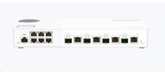 Zařízení QSW-M2106-4C je webově řízený přepínač (switch) úrovně 2 se čtyřmi kombinovanými porty 10GbE SFP+/RJ45 a šesti porty 2,5 Gigabit. Zařízení QSW-M2106-4C podporuje přepínání a správu sítě úrovně 2 (L2) prostřednictvím uživatelsky vstřícného webového rozhraní, nabízí flexibilní nasazení v hybridních vysokorychlostních síťových prostředích a poskytuje řešení pro správu sítě na základní úrovni, které zvládnou používat I ti, kdo nepatří mezi profesionály v oboru IT. Díky vysokému výkonu, uživatelsky přívětivé správě a stolnímu provedení umožňuje zařízení QSW-M2106-4C nákladově efektivní upgrade na síť 2,5GbE nebo 10GbE při optimalizaci šířky pásma a zajištění bezpečné údržby sítě. Zařízení QSW-M2106-4C se vyrábí na Tchaj-wanu (MIT) a poskytuje vysoce kvalitní a spolehlivé síťové řešení.