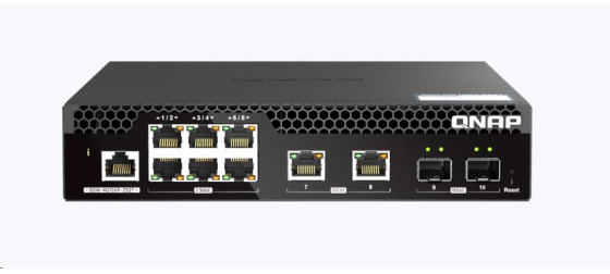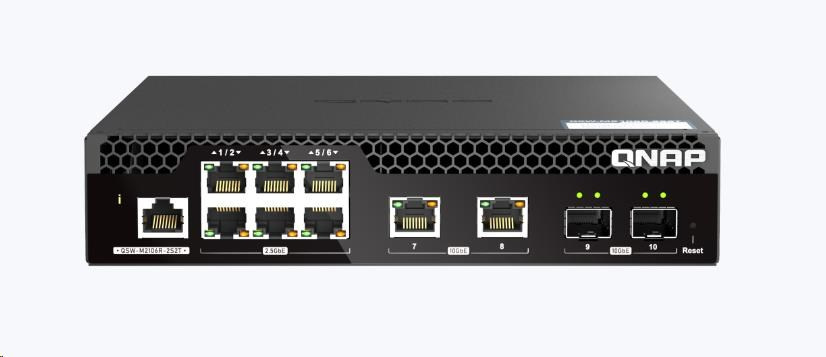 Zařízení QSW-M2106R-2S2T je webově řízený switch úrovně 2 se dvěma optickými porty SFP+ 10GbE, dvěma porty RJ45 10GbE a šesti porty RJ45 2,5GbE. Zařízení QSW-M2106R-2S2T podporuje přepínání a správu sítě úrovně 2 (L2) prostřednictvím uživatelsky vstřícného webového rozhraní, nabízí flexibilní nasazení v hybridních vysokorychlostních síťových prostředích a poskytuje řešení pro správu sítě na základní úrovni. Díky poloviční šířce lze pro úsporu místa do prostoru racku 1U nainstalovat dvě zařízení QSW-M2106R-2S2T. Zařízení QSW-M2106R-2S2T se vyrábí na Tchaj-wanu (MIT) a poskytuje vysoce kvalitní a spolehlivé síťové řešení.