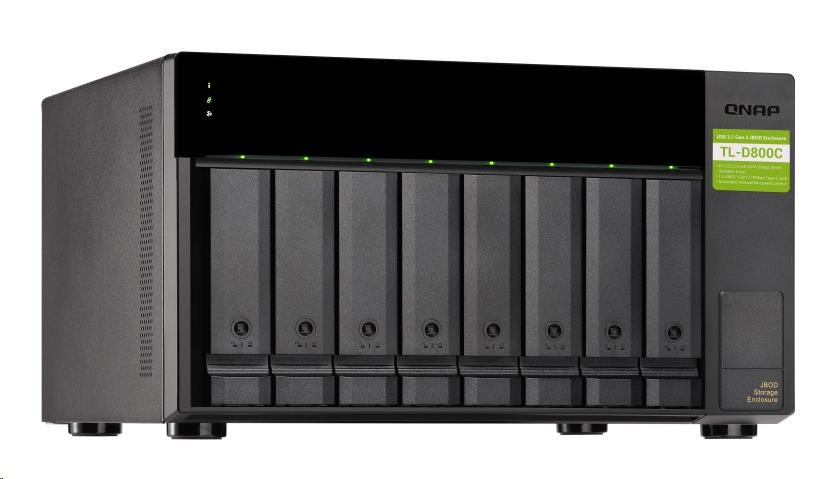 Úložná jednotka JBOD TL-D800C vám umožňuje zálohovat a rozšířit vaše zařízení QNAP NAS. Zařízení TL-D800C má osm 3,5" diskových pozic SATA 6Gb/s s konektivitou USB 3.2 Gen2 (10 Gb/s) typu C pro zajištění řešení, které umožňuje rychlé a snadné rozšíření.
