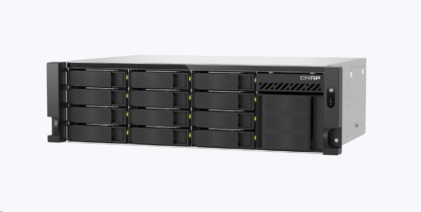 | Pozice pro diskové jednotky | 12 x 3,5-palcový SATA 6Gb/s, 3Gb/s + 4 x E1.S/M.2 PCIe Gen 3 x2 sloty Systém se dodává bez HDD. Seznam kompatibilních disků HDD najdete na stránce https://www.qnap.com/compatibility/ |