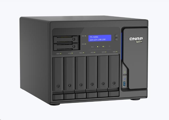 | Pozice pro diskové jednotky | 6 x 3,5" SATA 6 Gb/s, 3 Gb/s + 2 x 2,5" SATA 6 Gb/s, 3 Gb/s Systém se dodává bez HDD. Seznam kompatibilních disků HDD najdete na stránce https://www.qnap.com/compatibility/ |