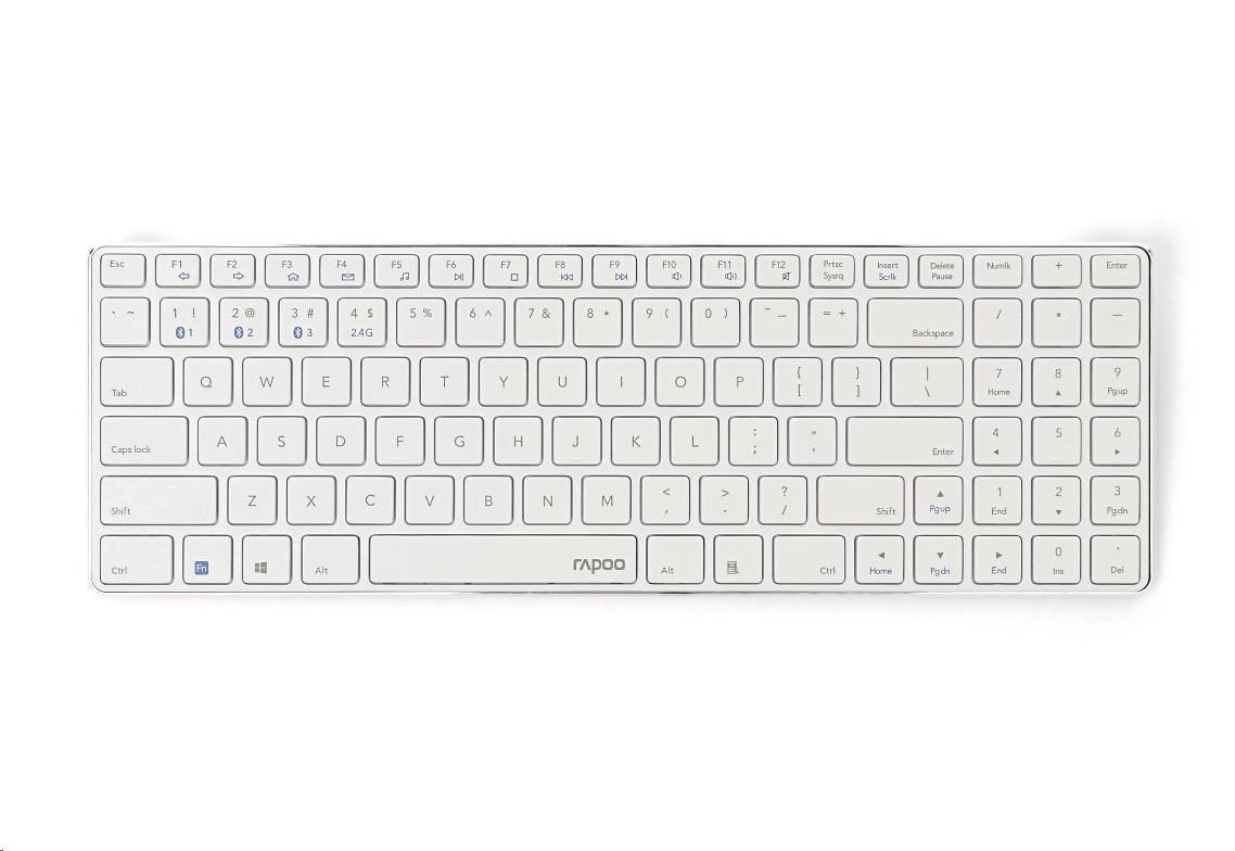 Klávesnice se pyšní oceněným ultratenkým designem s tloušťkou pouhých 4,9 mm a základnou z anodizované hliníkové slitiny, která zajišťuje nejen prémiový vzhled, ale i vysokou odolnost a pevnost. Kompaktní rozměry a numerický blok z ní dělají ideálního společníka pro práci doma i v kanceláři. S úspornou technologií Rapoo navíc dosahuje životnosti baterie až 12 měsíců, čímž vás zbaví starostí s její častou výměnou.