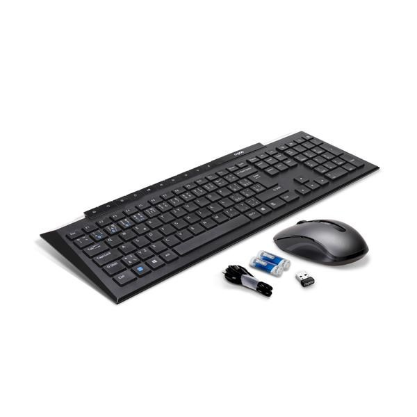 Tato stylová stolní sada s konstrukcí odolnou proti polití je tvořena klávesnicí a myší. K přenosu signálu využívá vícerežimové bezdrátové připojení firmy Rapoo – spolehlivý 2,4GHz bezdrátový přenos, Bluetooth 3.0 nebo Bluetooth 5.0 (chytrý) – umožňující připojit současně několik zařízení a přepínat (automaticky je párovat) mezi nimi. Klasický vzhled a dostupnost v černé a bílé barvě vylepší podobu každého pracovního místa. Klávesnice je doplněna multimediálními klávesami s rychlým a pohodlným přístupem k používaným funkcím. Myš z této sady je vybavena nastavitelným HD senzorem s 1600 DPI zajišťujícím plynulý a přesný pohyb ukazatele. Navíc sada 8210M s tlačítkem vypínače umožňuje až 12měsíční stálý provoz klávesnice a až 9měsíční provoz myši.