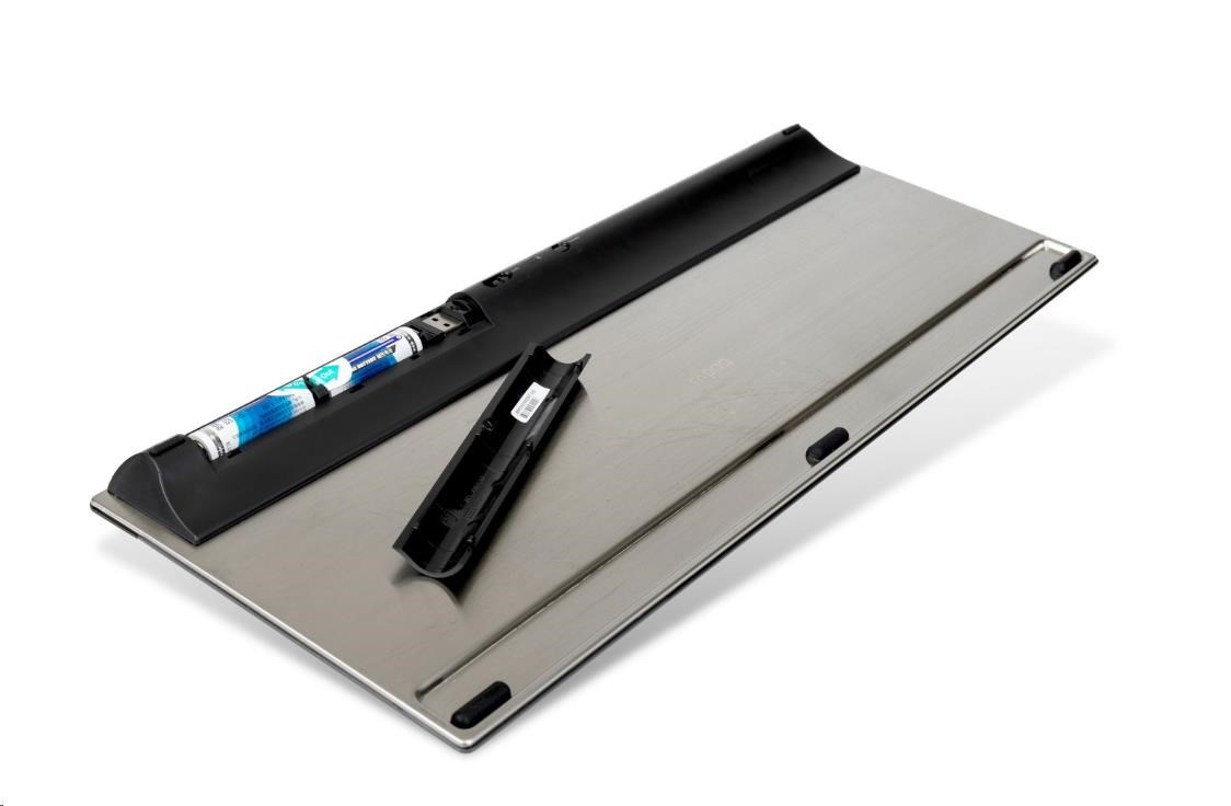Tato pokročilá stolní sada kombinuje prvotřídní funkce a materiály se stylovým ultra tenkým 4 mm designem klávesnice. Tělo klávesnice je vyrobeno z kartáčované nerezové oceli a hliníkové slitiny a je nejen robustní, ale také dodává eleganci každému stolnímu počítači. Klávesnice je vybavena multimediálními klávesami, které umožňují rychlý a snadný přístup ke všem důležitým multimediálním funkcím.