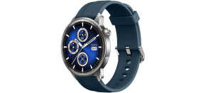 Hodinkové funkce:Datum, Den v týdnu; Kompatibilní OS:iOS, Android; Konektivita:Bluetooth; Součást balení:Dobíjecí kabel; Tvar ciferníku:Kulatý; Typ displeje:AMOLED; Určení:Pánské; Zobrazení času:Digitální; Barva pouzdra:Stříbrná; Barva řemínku:Modrá; Maximální obvod zápěstí:230 mm.