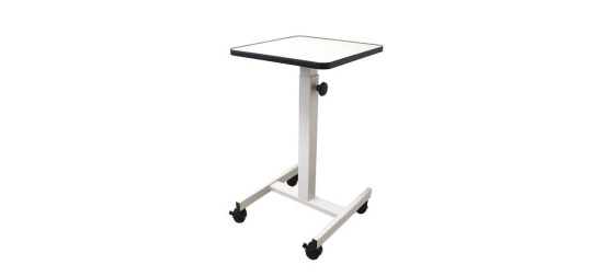 Stolek pod zpětné projektory nebo dataprojektory bez odkládací desky s nastavitelnou výškou 62-100cm na kolečkách (pracovní deska 39x38cm /nosnost do 25kg, celková hmotnost 7,5kg, barva bílá).. Reflecta GmbH, Wiesenstr. 25 35630 Ehringshausen Německo, Kontakt přes formulář: https://www.reflecta.de/kontakt