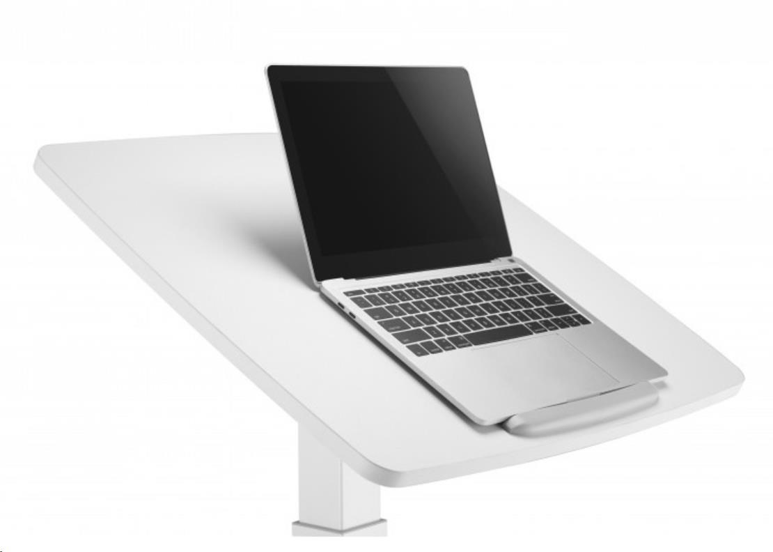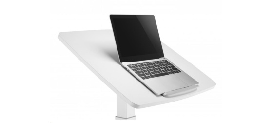 ERGOnomický pracovní stolek na laptop nebo projektor max 8kg s mechanizmem ovládaným nohou se vzduchovým pístem pro změnu výšky 76-113cm, náklon pracovní plochy 60x52cm 0-30°, vhodné pro sezení i stání nebo jako lektorský stolek, rozměry 60x53x76-113cm, barva bílá.