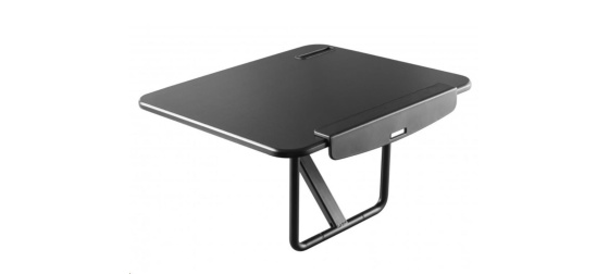 ERGOnomická pracovní plocha na laptop a mobil max 10kg pro uchycení na opěrnou část pracovní židle, jednoduché řešení pro změnu pozice při práci s laptopem ze sezení na stání, nastavení optimálního náklonu opěrným mechanizmem, přenosné provedení, rozměry 45x40x26 cm, barva černá.