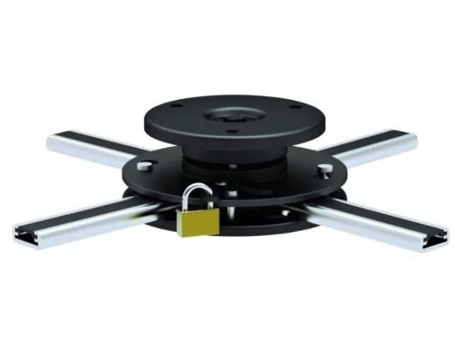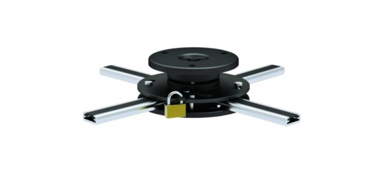 Stropní držák na dataprojektory - vzdálenost od stropu 6,2cm, přístroj lze otočit o 360° a naklonit +/-15°, maximální zatížení 20kg, možnost uzamčení proti odcizení, černý / stříbrný. Univerzální systém uchycení dataprojektorů (rozsah 16-33 cm).. Reflecta GmbH, Wiesenstr. 25 35630 Ehringshausen Německo, Kontakt přes formulář: https://www.reflecta.de/kontakt