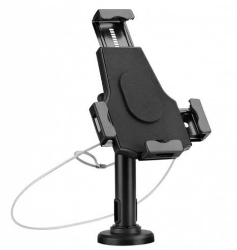Bezpečnostní uchycení pro tablety 7,9-10,5" na stůl a na stěnu. Nastavitelný sklon tabletu rozmezí +70/-70° a navíc otočný 360°, fixace vruty ke stolu - 330° otočné kolem osy, hmoždinky do zdi, ocelové lanko proti odcizení, kabelový prostup, černý.. Reflecta GmbH, Wiesenstr. 25 35630 Ehringshausen Německo, Kontakt přes formulář: https://www.reflecta.de/kontakt