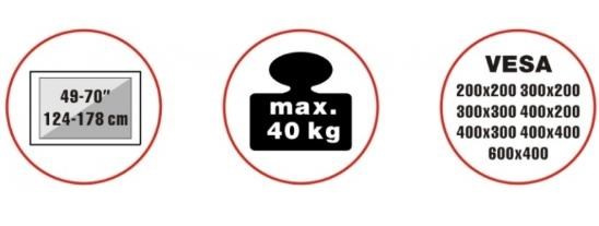 Unikátní televizní stolek na Plasma a LCD TV s uhlopříčkou 49"- 70" (124-178cm) a hmotností maximálně 40kg. Designová kombinace kové konstrukce + 4x dřevěné nohy (ořech). Propracované tvary a vedení kabeláže pro maximální estetický zážitek. Uchycení VESA: 200x200, 300x200, 300x300, 400x200, 400x400, 600x400.. Reflecta GmbH, Wiesenstr. 25 35630 Ehringshausen Německo, Kontakt přes formulář: https://www.reflecta.de/kontakt