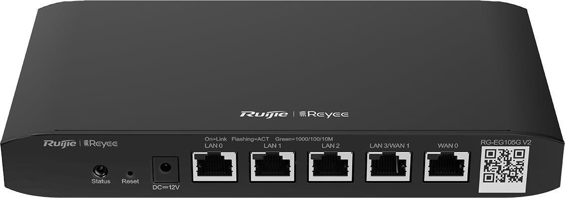 Registrace dealerské ceny: https://docs.google.com/forms/d/1sWwsswsbBk36eZx4CJrfl47qUvrORQyYz7kMjrt2f_c/prefill Popis produktu Ruijie RG-EG105G V2 je kabelový Gigabitový router s VPN vhodný do domácností i malých firem. Bezpečný a spolehlivý router s vlastním webovým managementem, možností správy přes Ruijie Cloud odkudkoliv a kdykoliv ale také blokováním obsahu na základě typu služeb z automaticky updatovaného seznamu nebo URL, inteligentní Multi-WAN load balancing a captive portál. Router disponuje 2 Gigabitovými WAN porty z čehož jeden je LAN/WAN, 3 Gigabitovými LAN porty a celkovým výkonem v NATu 600 Mbps. Router pro přístup do lokální sítě umožňuje nastavení i několika možností VPN serverů a to konkrétně: IPsec, PPTP, L2TP a OpenVPN. Obsah balení • Zařízení • Napájecí adaptér 12V Technické parametry Konektory a rozhraní Možnost více WAN:Ano Rychlost LAN:(3) 10/100/1000Mbps + (1) 10/100/1000Mbps LAN/WAN Gigabit LAN:Ano Napájení Typ napájení:DC konektor Max. spotřeba energie [W]:6 Napájení přes konektor/svorkovnici:12V DC Fyzické charakteristiky Provedení:Desktop Ventilátory:Bez ventilátoru Šasi:Kovové Tlačítka:Reset Provozní teplota [°C]:0 až 40 Šířka [mm]:207 Výška [mm]:28 Hloubka [mm]:109 Hardware CPU:Dual Core Frekvence CPU [MHz]:880 Počet CPU jader:2 RAM [MB]:128 Obecné Propustnost NAT [Mb/s]:600 Software Podporované VPN:PPTP, L2TP, IPSec, OpenVPN. OEM - Dodavatel: eD system a.s., Novoveská 1262/95, 709 00 Ostrava - Mariánské Hory, Česká republika, ,