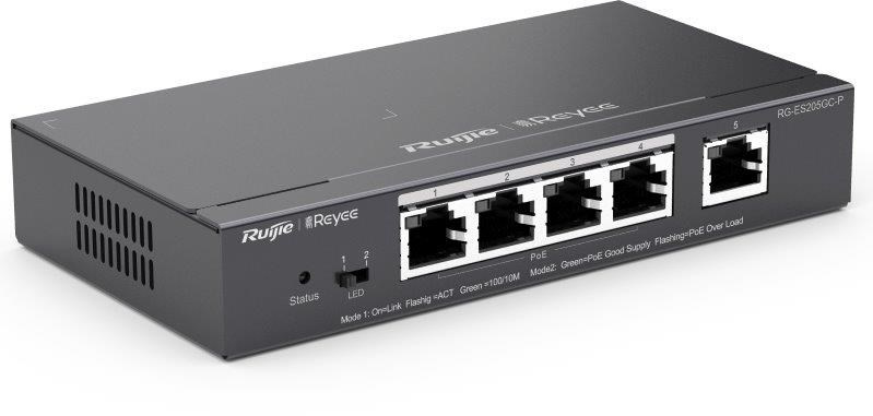 Popis Reyee RG-ES205GC-P Smart mananged PoE switch, 4x PoE