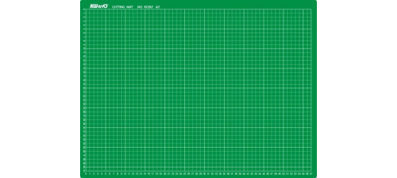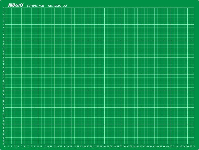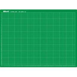 Řezací podložka pro formát A2. Rozměry 45×60 cm. Slouží jako pevný podklad pro řezání odlamovacím nebo rotačním nožem. Podložka o tloušťce 3 mm je vyrobena ze tří vrstev materiálu, má tuhé neproříznutelné jádro. Po projetí nože se se její povrch opětovně „zacelí“. Měkká povrchová vrstva podložky zároveň chrání ostrost nože. Provedení zelená, s antireflexním matným povrchem, tisk základním rastrem s měřítkem. Je vhodná také jako podložka pod počítačovou myš, nebo podložka pro razítkování.. , ,
