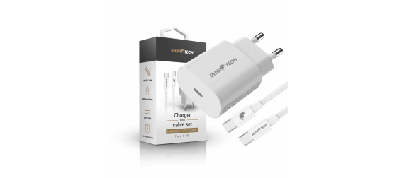 RhinoTech 25W PD nabíjecí adaptér s kabelem USB-C na USB-C 60W 1M bílá