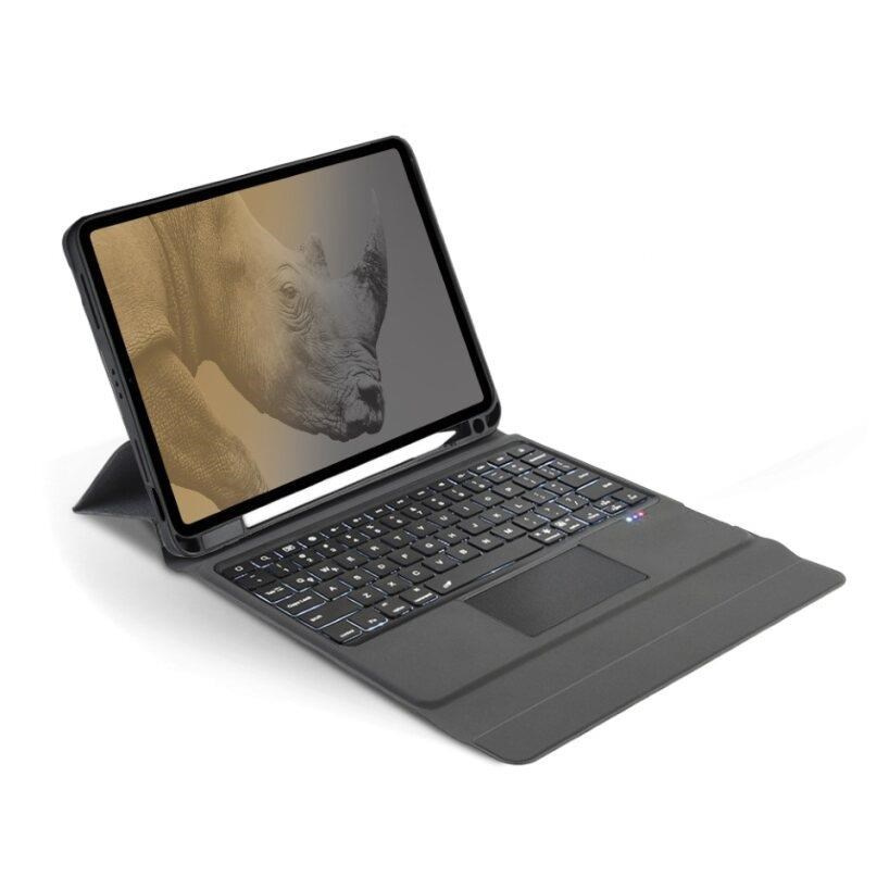 Velikým benefitem je zabudovaný touchpad, díky kterému si při práci vystačíte i bez myši. Mezi další skvělé vlastnosti patří RGB podsvícená klávesnice s možností regulací / vypnutí / zapnutí podsvitu, záda krytu s odvodem tepla a integrovaný držák na Apple Pencil. Pouzdro jednoduše použijete i jako stojánek při práci na stole, a naopak v zavřeném režimu udrží pouzdro zavřené silný magnet.