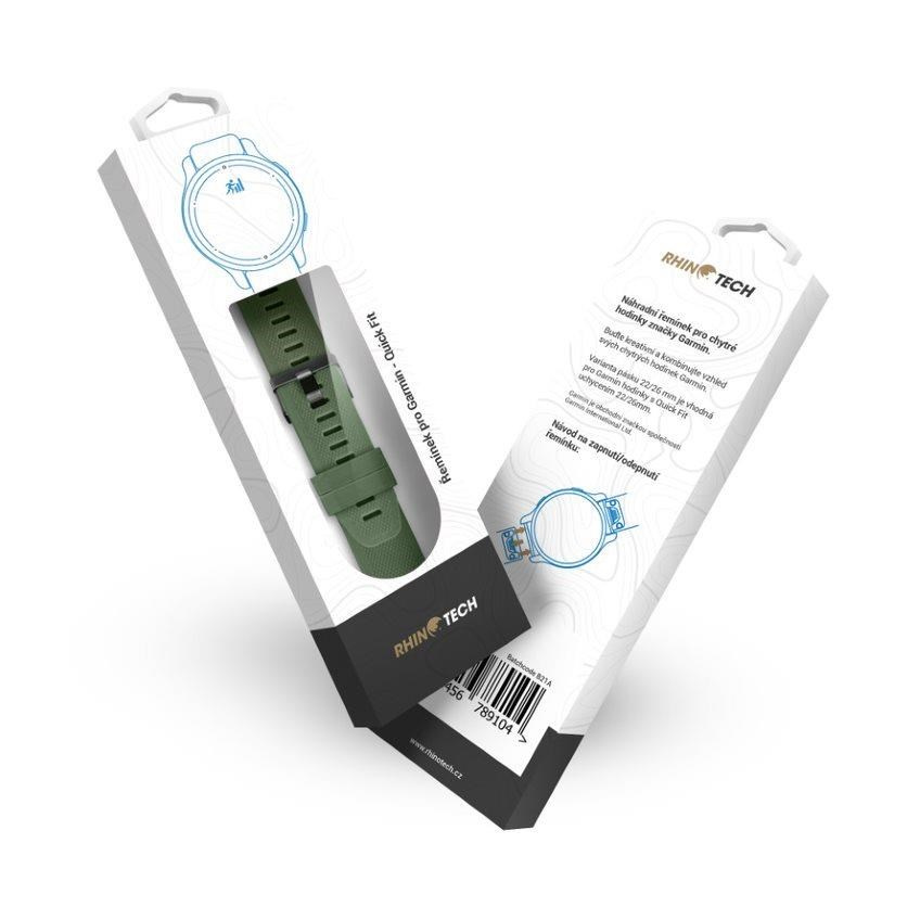 Popis RhinoTech řemínek pro Garmin QuickFit sportovní silikonový 26mm tmavě zelený