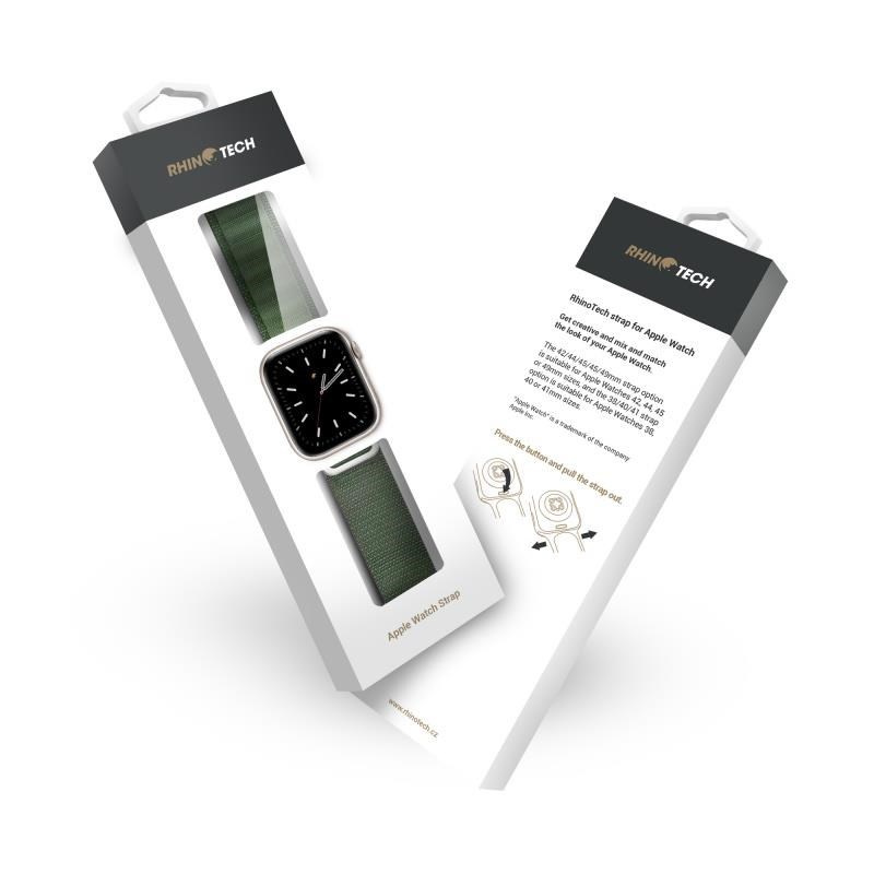 RhinoTech nylonový řemínek s upínáním na kovovou přezku pro Apple Watch se snadno nastavitelným provlékacím zapínáním. Tento odolný a pevný a lehký řemínek je navržený pro tréninkové aktivity, ale i pro každodenní nošení. Materiál z nylonové tkaniny pohodlně sedí na zápěstí a lehce se vyměňuje. Díky dostupnosti ve více barevných provedeních, můžete snadno přizpůsobit vzhled Vašich Apple Watch s Vaším aktuálním outfitem.