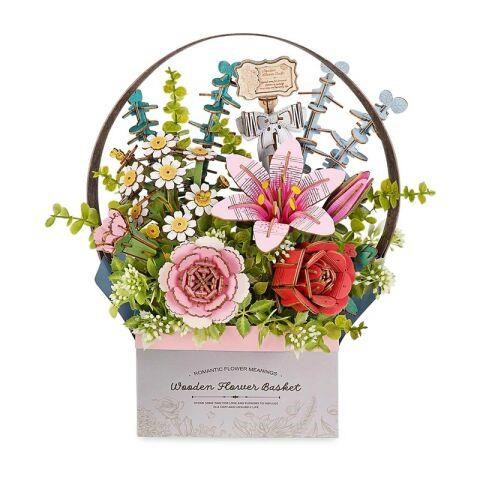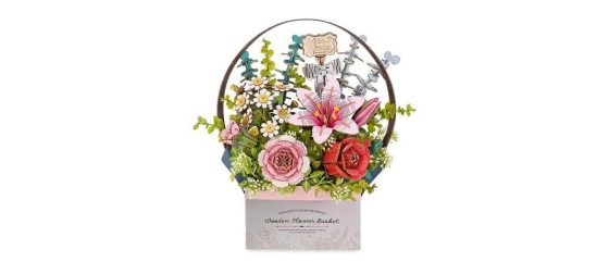 Popis RoboTime 3D dřevěná skládačka Košík s květinami