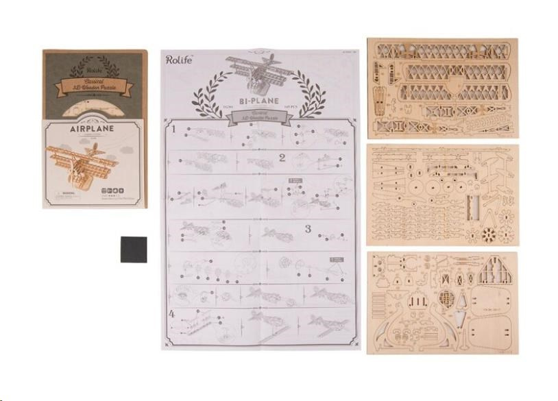 Popis RoboTime dřevěné 3D puzzle Historické letadlo