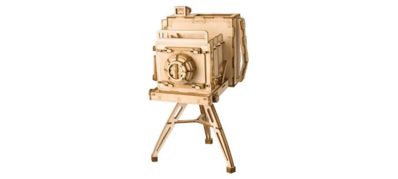 Popis RoboTime dřevěné 3D puzzle Historický fotoaparát