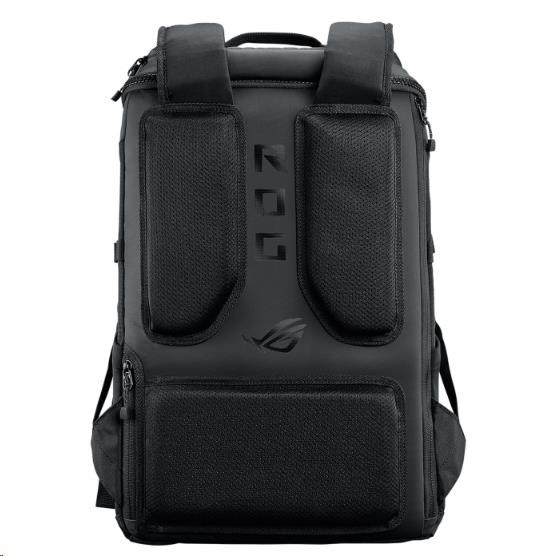 Herní batoh ROG Ranger BP2701 s objemem 22 litrů má velkou polstrovanou kapsu, do které se vejde až 17palcový notebook, a několik menších kapes na klávesnici plné velikosti, myš a podložku pod myš, headset, nabíječku a další vybavení.