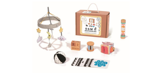 Popis Sada montessori hraček pro miminka 0–6 měsíců - edukativní box