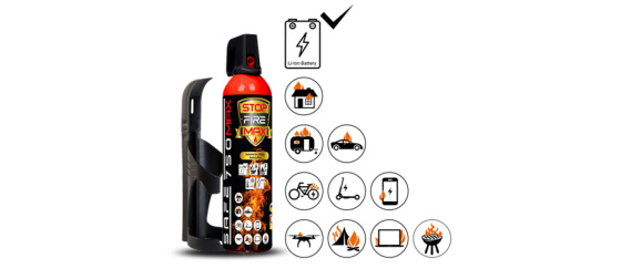 SAFE 750 MAX však nabízí mnohem více. Je jedním z mála hasicích prostředků na trhu, který dokáže účinně hasit i začínající požáry lithiových baterií. Tyto baterie jsou dnes běžnou součástí mnoha produktů, jako jsou vysavače, elektrokola, elektrokoloběžky, drony, telefony, počítače a další elektronická zařízení.