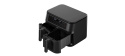 Když zrovna tuto kompaktní fritézu nepoužíváte, můžete ji bez potíží uložit do takřka jakékoliv skříňky kuchyňské linky. Její rozměry jsou totiž i přes dvojitou kapacitu pouhých 412 × 402 × 300 mm (při hmotnosti 8,5 kg).