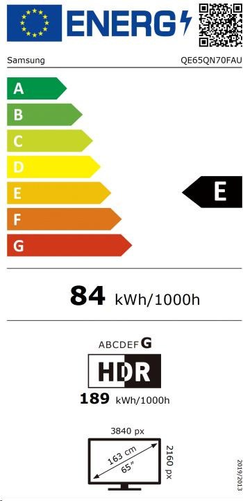 Použití:Domácí; Smart TV; Úhlopříčka displeje ("):65; Operační systém TV:Tizen; Rozlišení:4K UHD 3840x2160; Technologie TV:QLED; Technologie panelu:QLED; Obnovovací frekvence:100/120 Hz; Tuner:DVB-T2; Duální tuner; Funkce:Herní režim, EPG, HDR, Wi-Fi, HbbTV, Webový prohlížeč, Bluetooth, VESA uchycení; HDR typ:HDR10+; Rozhraní:HDMI, USB, LAN; HDMI počet:4.Více