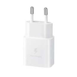Síťová nabíječka Samsung s USB-C portem. Dosahuje výkonu až 15 W, což znamená rychlé a spolehlivé nabíjení pro vaše zařízení.