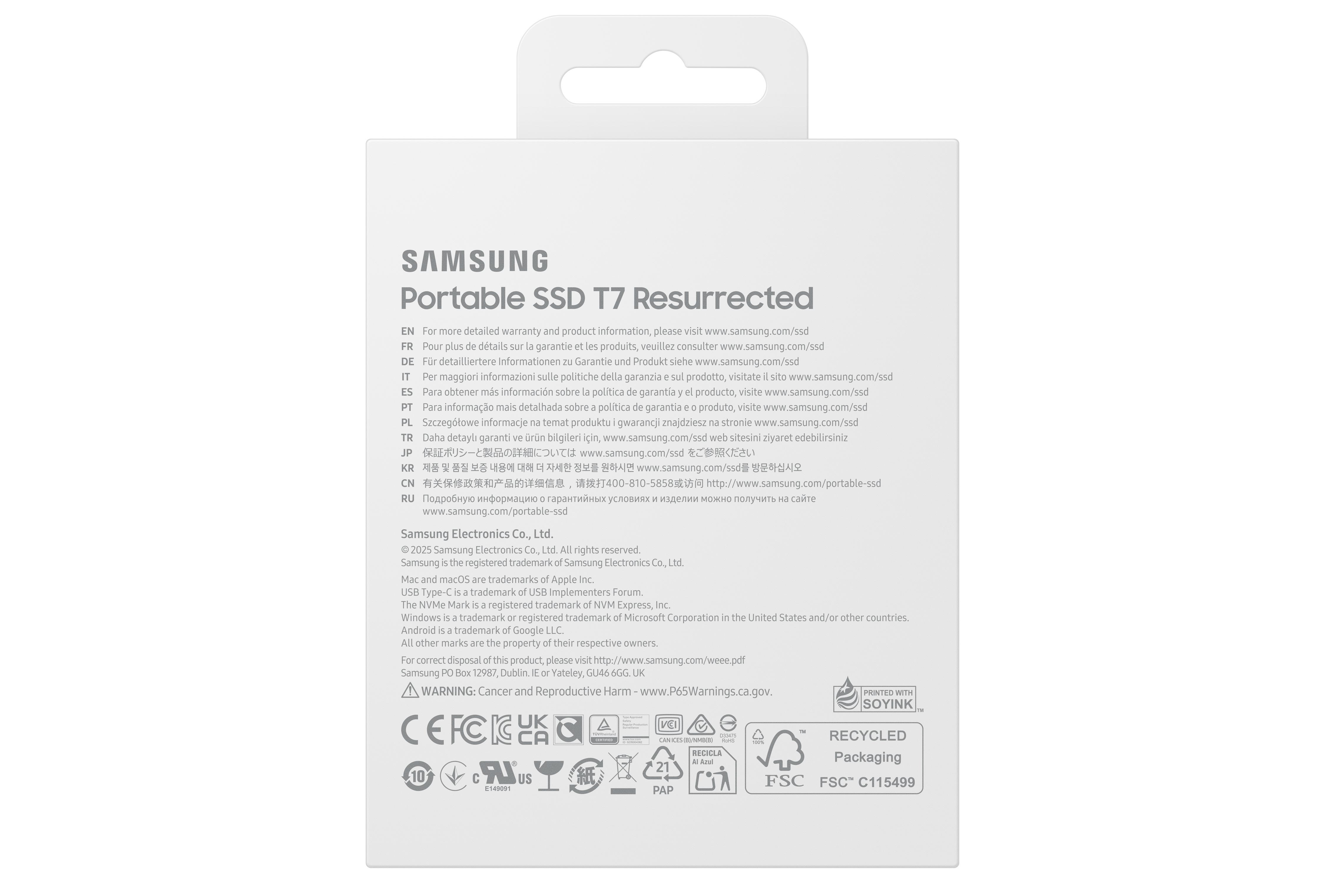 Součástí balení je kabel USB typu C na C pro větší pohodlí. T7 Resurrected zajišťuje bezproblémový přenos dat mezi systémy Windows, macOS, chytrými telefony, tablety a herními konzolemi.