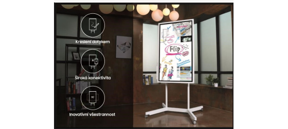 • Dotykový displej Samsung Flip umožňuje díky rozsáhlým možnostem konektivity snadné zapojení více uživatelů. Takže vy i vaši spolupracovníci můžete kdykoliv upravovat a tvořit rozmanitý obsah v té nejvyšší kvalitě.