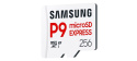 Samsung P9 Express je výkonná microSDXC paměťová karta s kapacitou 256 GB, ideální pro moderní zařízení jako mobilní telefony, tablety, akční kamery, drony, notebooky či herní konzole. Díky rozhraní PCIe Gen3.0x1 a NVMe 1.3 (SD Express) nabízí extrémně rychlý sekvenční čtení až 800 MB/s a podporu UHS-I s rychlostí čtení až 90 MB/s.