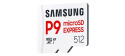 Samsung P9 Express je špičková microSDXC paměťová karta s velkou kapacitou 512 GB, určená pro široké spektrum zařízení – od mobilních telefonů a tabletů až po drony, akční kamery, notebooky a herní konzole.
